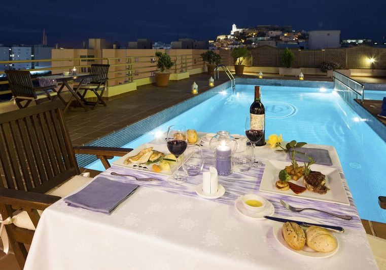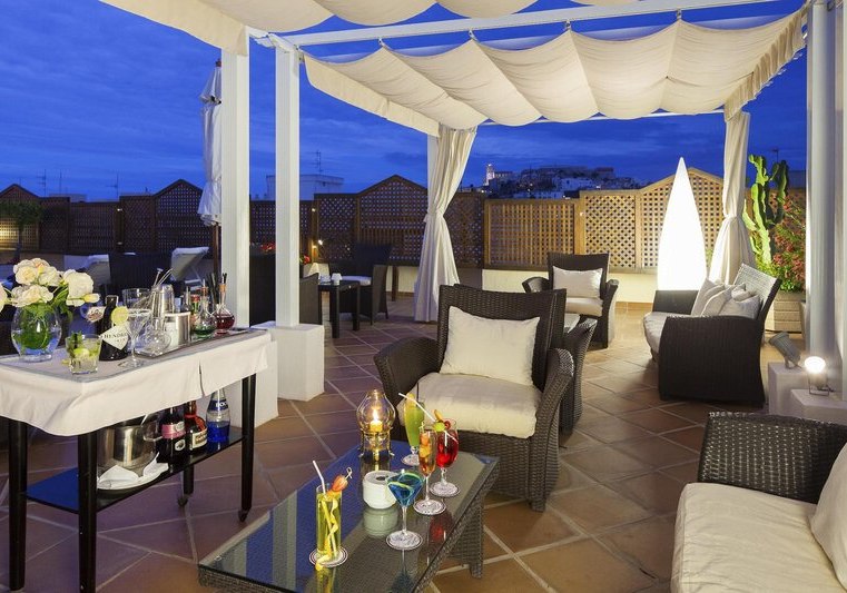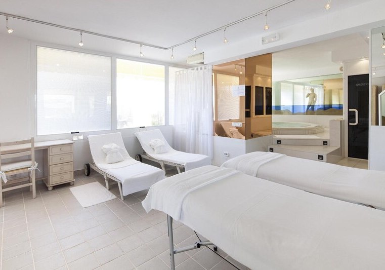 Über den Dächern der Stadt erlebt Ihr das Spa mit Whirlpool auf der Dachterrasse – ein ruhiger Ort nach einem Tag in Dalt Vila oder am Jachthafen. Ergänzend stehen Massagen bereit, darunter Aromatherapie und Teilkörperbehandlungen, sowie kosmetische Anwendungen von Gesichtsbehandlung bis Peeling und Modelagen.