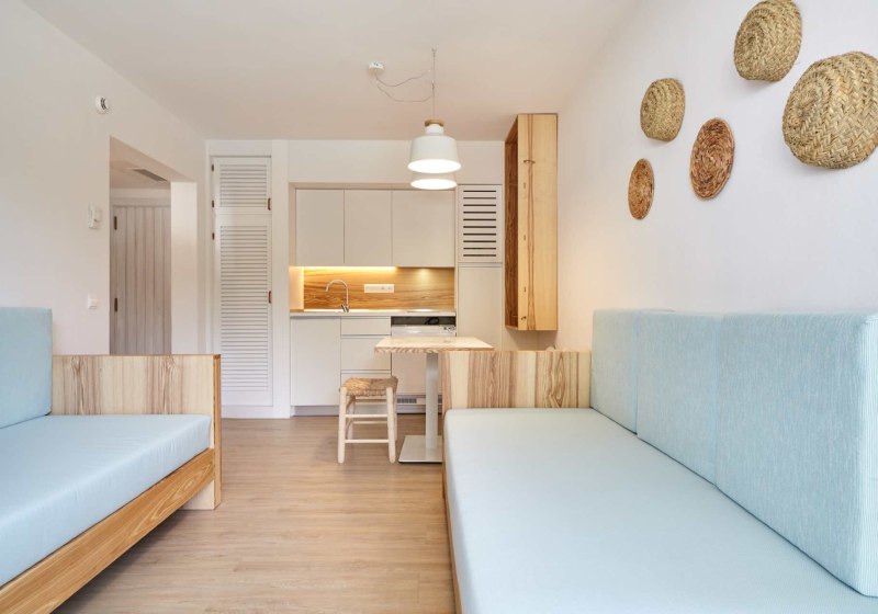 - Apartmentstil: Studios und Appartements mit Kitchenette und Balkon.