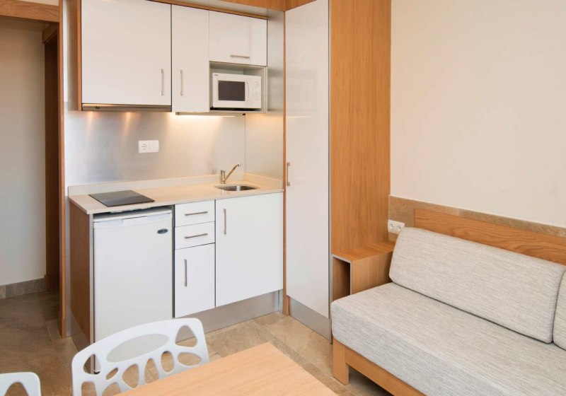 • Klimaanlage • Balkon (je nach Zimmerkategorie) • Kühlschrank • Haartrockner • Kochnische • Sitzecke (je nach Zimmerkategorie) • Mikrowelle • Minikühlschrank • Safe • Schlafsofa • Fernseher • WiFi • Backofen • Bergblick • Poolblick • Meerblick (je nach Zimmerkategorie) • Kaffee-/Teezubereiter • Terrasse