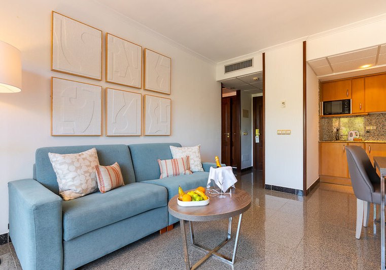 Ihr wohnt in Suiten mit separatem Schlafzimmer – ein klarer Vorteil, wenn Ihr Struktur und Ruhe schätzt. Ausgestattet mit Bad oder Dusche/WC, Föhn, Klimaanlage und Heizung, Sat-TV, Telefon, WLAN, Safe und Minibar. Die Küche mit Kühlschrank, Kochnische und teils Mikrowelle unterstützt selbstbestimmte Tagesabläufe.