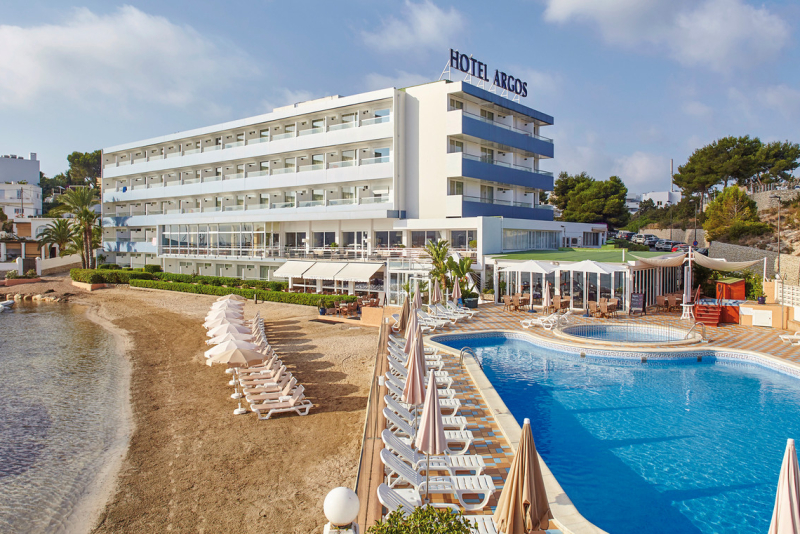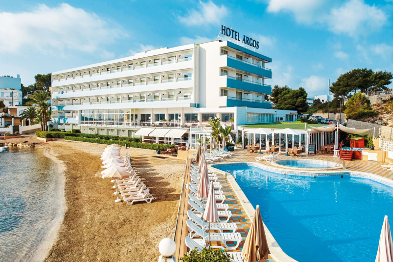 Das Hotel Argos befindet sich direkt am Strand von Talamanca, nur einen Spaziergang von Ibiza Stadt entfernt. Zahlreiche Restaurants, Bars und Einkaufsmöglichkeiten liegen in unmittelbarer Nähe des Hotels, so dass sich diese Anlage für Badeferien in lebhafter Umgebung besonders gut eignet. Den Flughafen von Ibiza erreicht man nach nur 8,3 km.Zimmer / Unterbringung