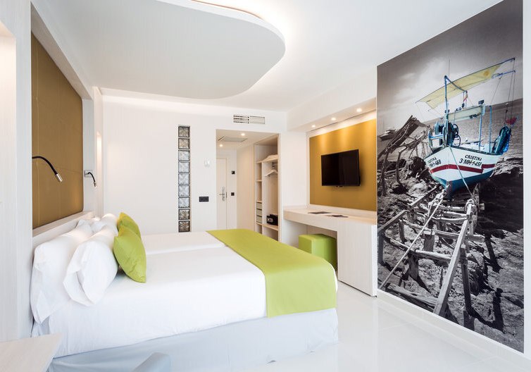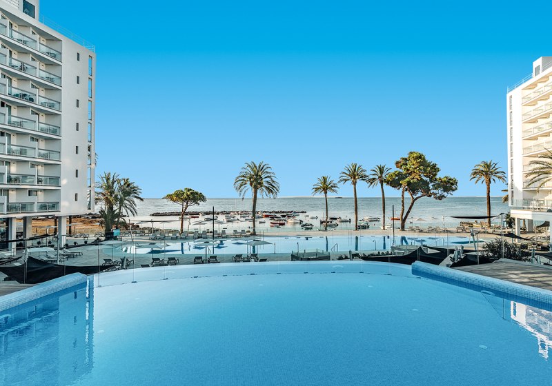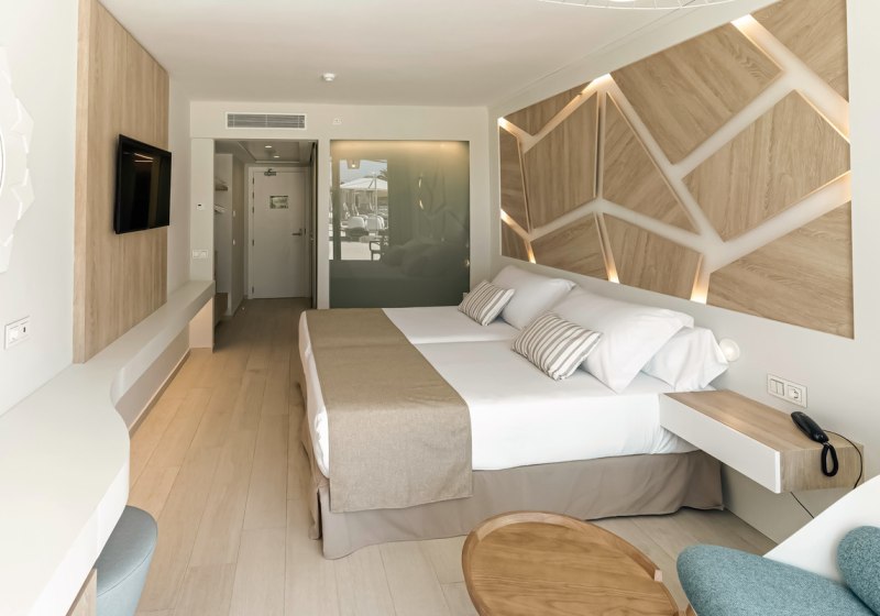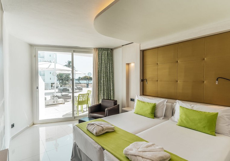 - Direkte Strandlage: Playa d’en Bossa liegt unmittelbar vor Eurer Hoteltür, mit kurzen Wegen.