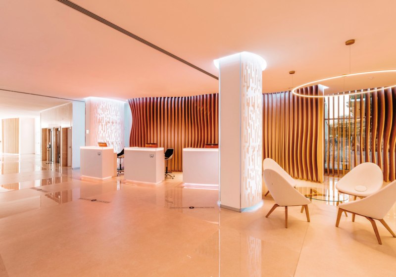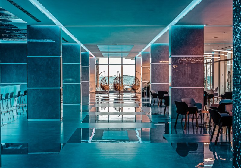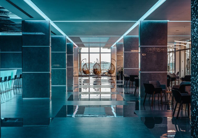 Die Infrastruktur ist breit aufgestellt: 24-Stunden-Rezeption, sechs Konferenzräume, kostenloses WLAN im gesamten Hotel und vielfältige Aufenthaltsbereiche vom Foyer über Bars bis zur Poollandschaft mit Sonnenliegen und Schirmen. Die Upper Level Terrasse mit eigenem Pool – zugangsabhängig je nach Kategorie – verleiht dem Ensemble einen ruhigen Rückzugsort über dem Geschehen.