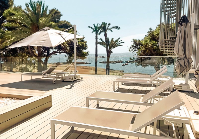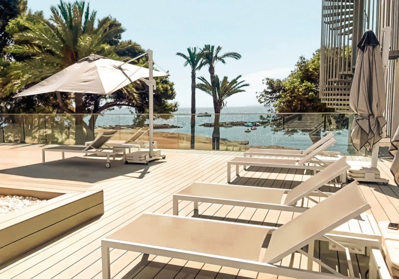 Direkt am Sandstrand der Playa d’en Bossa wohnt Ihr zwischen Meer, Promenade und kurzen Wegen zu Einkauf und Unterhaltung. Ibiza-Stadt mit Altstadt und Hafen liegt etwa 2,2 Kilometer entfernt – ein kurzes Stück für Kulturspaziergänge, Sundowner-Blicke und Restaurantabende. Der Flughafen ist rund 6 Kilometer entfernt, was die An- und Abreise angenehm planbar macht.