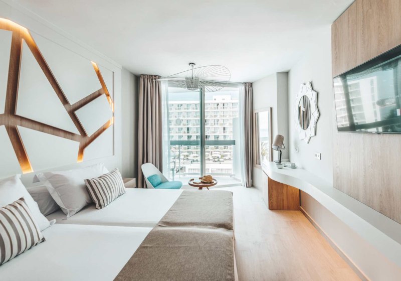 The Ibiza Twiins vereint direkte Strandlage an der Playa d’en Bossa, ein klares Abendprogramm mit Shows und Live-Musik sowie flexible Gastronomie vom Buffet bis zum À-la-carte-Restaurant. Die Zimmer bieten Größenwahl, seitliche Meerblick-Optionen und je nach Kategorie Zugang zur Upper Level Terrasse.