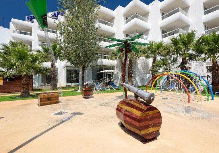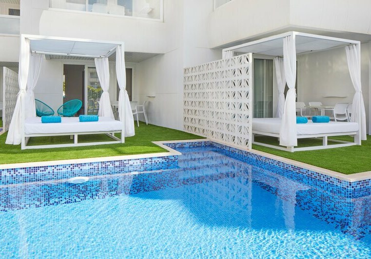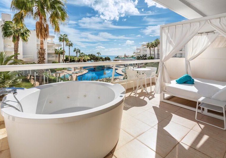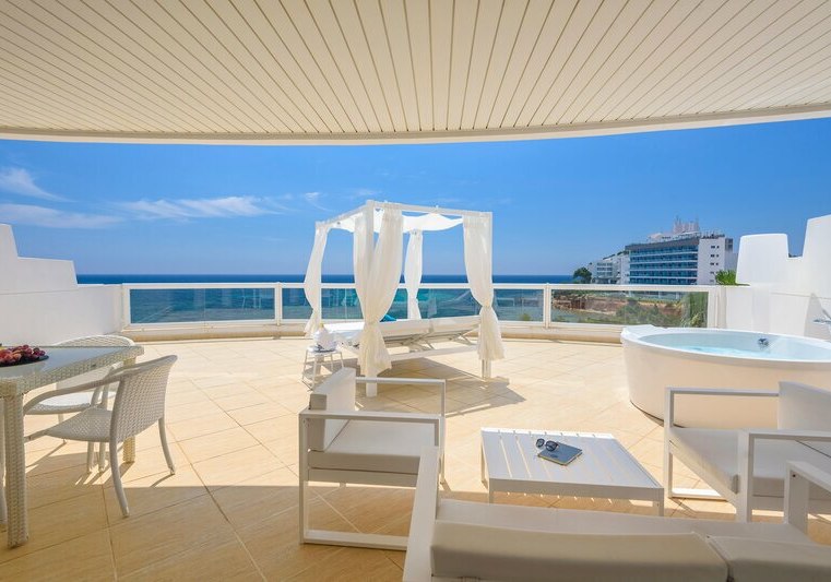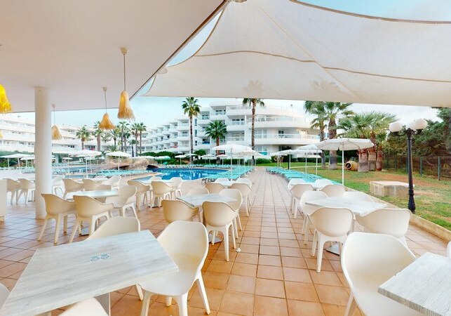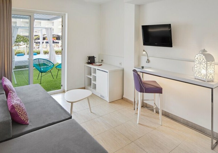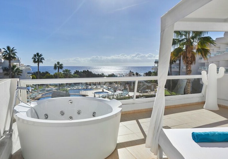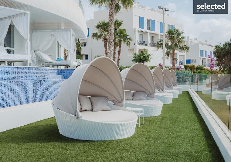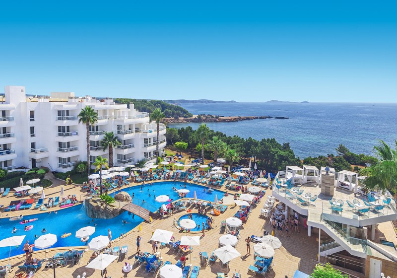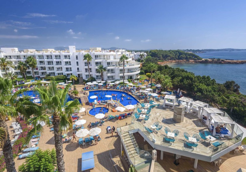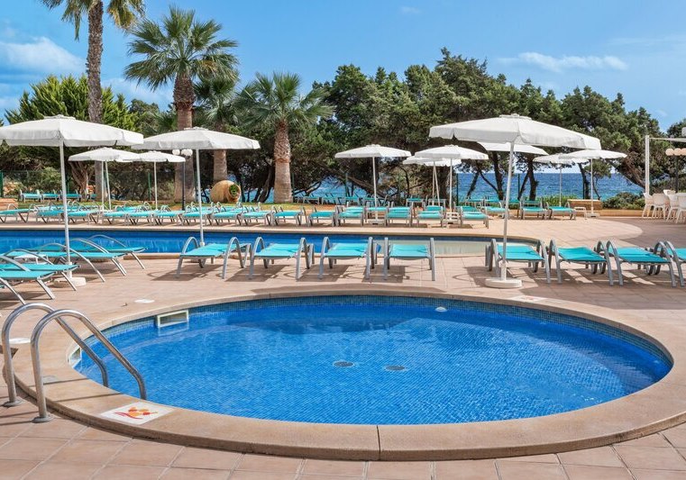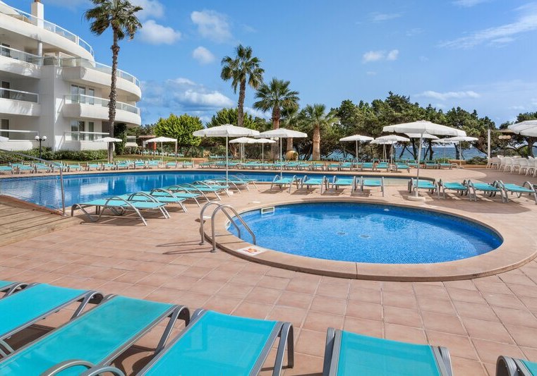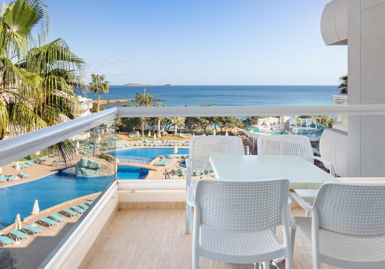 Familien, Paare und Aktivreisende finden hier eine klare Struktur: entspannte Poolbereiche, eine Adults-Only Terrasse mit Balibetten, lebendige Animation zu ausgewählten Zeiten und ruhige Zonen zum Zurückziehen. Das Stadtzentrum liegt rund 800–900 Meter entfernt, Busverbindungen führen regelmässig nach Ibiza-Stadt. Praktisch: Ein Supermarkt liegt direkt gegenüber, zusätzliche Shops und Gastronomie erreicht Ihr zu Fuß.
