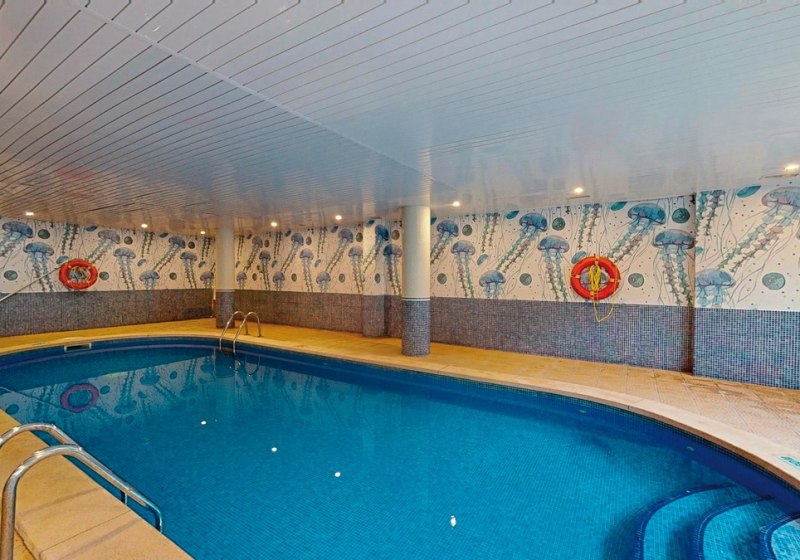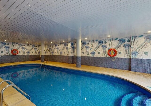 Für ruhige Stunden steht ein beheiztes Hallenbad bereit, ergänzt durch Whirlpool und Sauna. Das Wellness-Center ist auf Erholung ausgerichtet und bietet klare Strukturen ohne Überfrachtung – genau richtig, wenn Ihr nach dem Strand Wärme und Wasser bevorzugt.