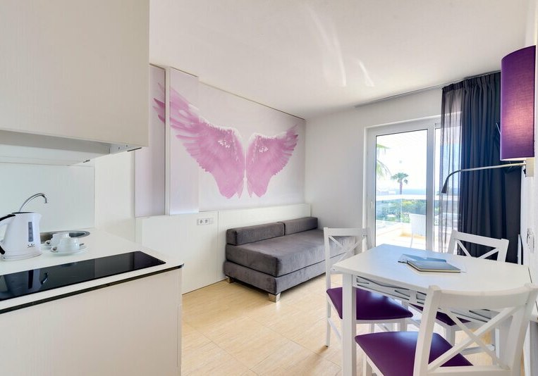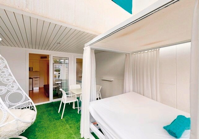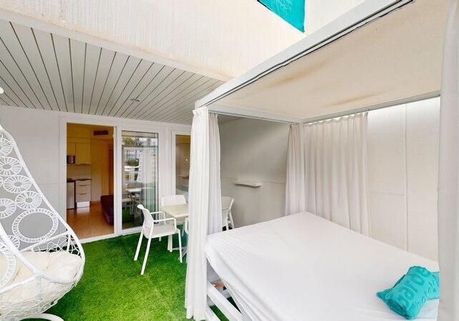 Ihr wohnt in durchdachten Wohneinheiten mit Balkon oder Terrasse, Klimaanlage und WiFi. Alle Zimmer verfügen über Bad mit Dusche oder Wanne, Föhn und Vergrößerungsspiegel. Für echten Wohnkomfort sorgen Kochnische mit Mikrowelle, Minikühlschrank, Toaster und Wasserkocher sowie Espresso- und Kaffee-/Tee-Set.