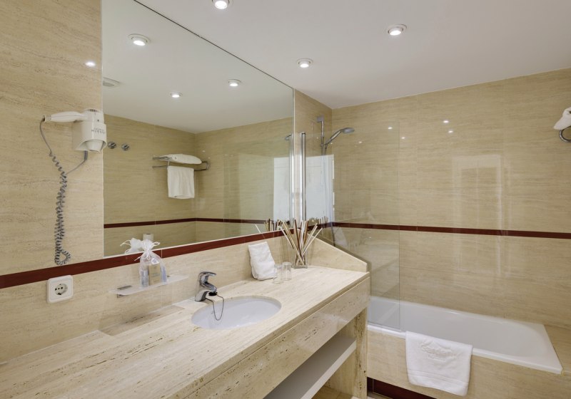 Sportflächen und Service fügen sich klug ein: Fitnessraum, Paddle-Tennisplätze und Multifunktionscourts, Fahrradkeller sowie Verleih. Praktisch sind Supermarkt, Souvenirshop und Tour-Desk, dazu eine Dachterrasse (Selected Sky & Sea Lounge). Hunde sind nicht erlaubt, Babybetten stehen kostenfrei bereit.