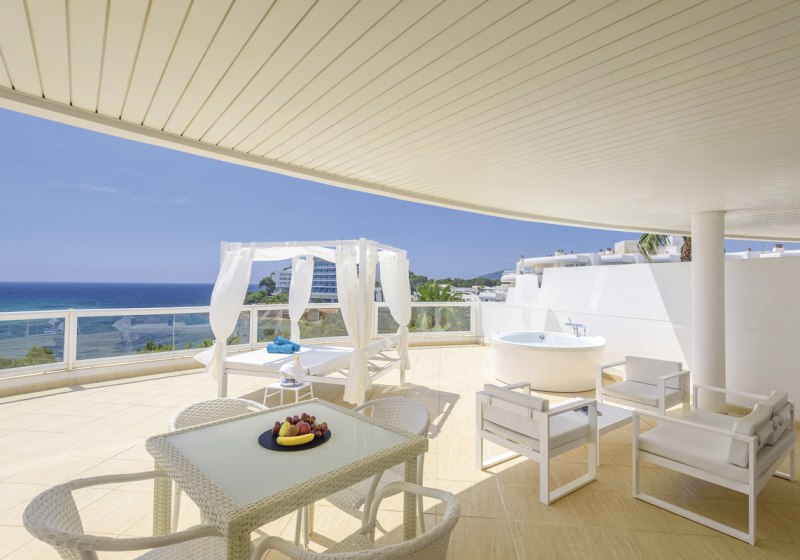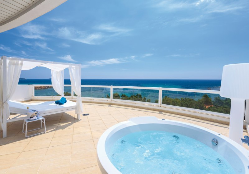 - Meerblick-Option: Privilege Suite mit Terrasse, Whirlpool und Balibetten.