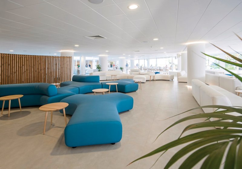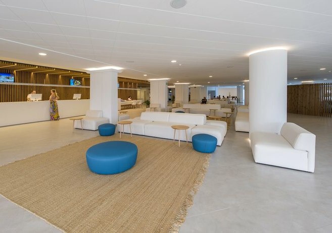Im Hotel Vibra Algarb wohnt Ihr direkt an der Playa d’en Bossa und spürt vom ersten Schritt an die Nähe zum Meer. Das Haus richtet sich an Strandurlauber und Familien, die kurze Wege schätzen. Mit sechs Etagen und klar strukturierten Bereichen wirkt alles übersichtlich, lebendig und zugleich entspannt. Zuletzt renoviert wurde das Hotel 2003, die offizielle Kategorie ist vier Sterne.