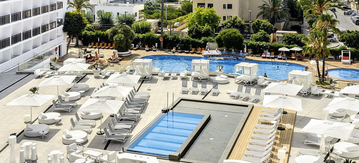 Im Hotel Vibra Mare Nostrum wohnt Ihr in Playa d’en Bossa, nur einen kurzen Weg vom Strand entfernt, mit der vibrierenden Energie Ibizas vor der Tür. Die Anlage wirkt großzügig geplant: zwei Außenpools, ein separater Kinderpool und weitläufige Terrassen prägen das Bild. Ihr kommt an, checkt an der 24‑h‑Rezeption ein und findet dank kostenlosem WLAN schnell Euren Rhythmus zwischen Pool, Terrasse und Lounge. Highlight: Vielseitige Anlage mit Pools und Terrassen nah am Strand.