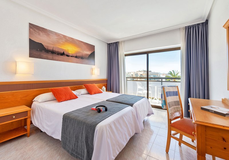 Die Zimmer sind funktional eingerichtet und auf klare Erholung ausgelegt. Doppelzimmer bieten ca. 15 m², Einzelzimmer etwa 9 m². Zur Grundausstattung zählen Klimaanlage, Sat‑TV, Safe (mit Kaution), Bad/WC und Föhn; je nach Zimmer ergänzt ein Balkon den privaten Rückzugsort. Highlight: Klare Zimmerwahl mit definierten Größen und zweckmäßiger Ausstattung.