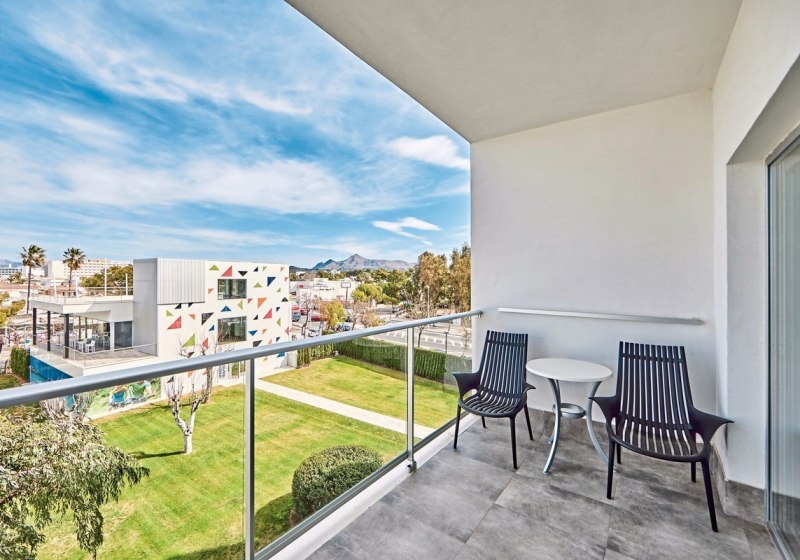 Hotel Astoria Playa richtet sich als Adults-Only-Haus ab 18 Jahren an Paare, Freundeskreise und Alleinreisende, die eine klare, ruhige Atmosphäre schätzen. Ihr wohnt nahe der Bucht von Alcudia, mit kurzen Wegen zum Strand und dem pulsierenden Küstenleben. Das Haus wirkt geordnet und modern, mit gepflegtem Garten, weitläufiger Sonnenterrasse und ausreichend Liegen sowie Schirmen rund um den Außenpool. Der Zugang zum benachbarten Beachclub "Kimera The Klub" erweitert Euren Radius um einen stylishen Treffpunkt am Meer.