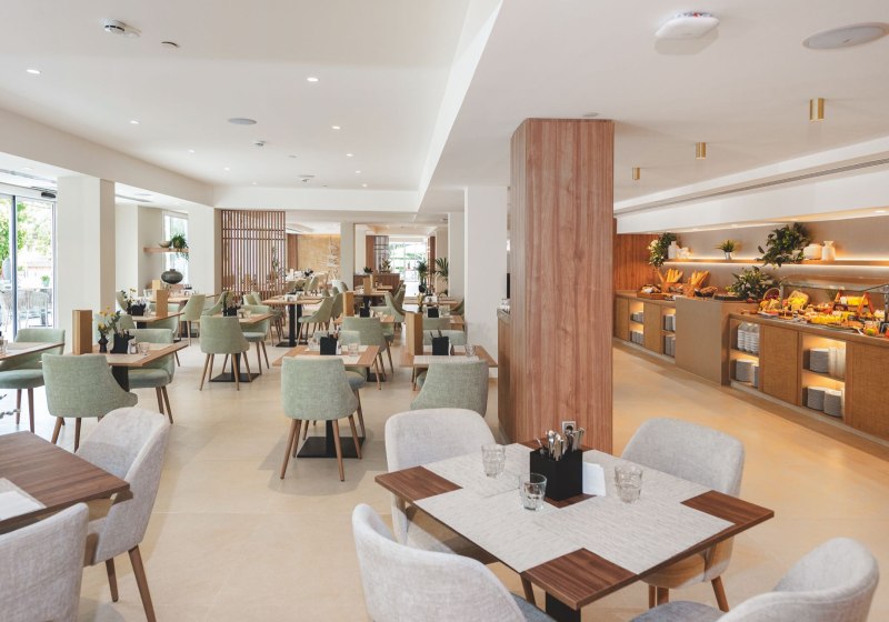Im allsun Hotel Cormoran trefft Ihr auf ein frisch erneuertes Adults-Only-Haus, das 2023 komplett modernisiert wurde und mit 150 Zimmern eine überschaubare Grösse bietet. Die Atmosphäre wirkt geradlinig und entspannt, die Wege sind kurz, die Bereiche klar strukturiert. In den Gemeinschaftszonen spürt Ihr das leichte Mittelmeer-Flair, während Ihr auf den Sonnenterrassen die Poollandschaft überblickt und den Tag in ruhigem Tempo plant.