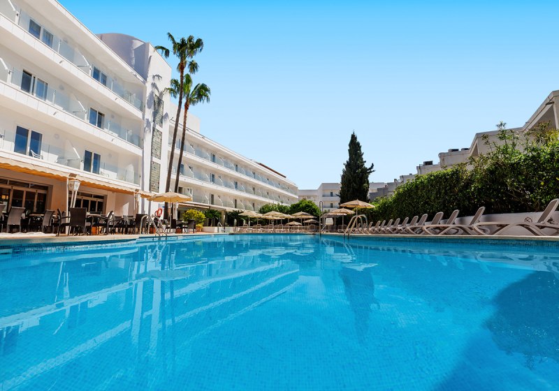 Im O7 Alondra wohnt Ihr in einem gepflegten Haus mit 160 Nichtraucherzimmern, verteilt über drei Etagen und erschlossen durch zwei Lifte. Die Stimmung ist lebhaft, ohne hektisch zu wirken: Außenpool mit Kinderbecken, Sonnenterrasse und Liegewiese strukturieren den Tag, abends locken Bar und Lobbybar.