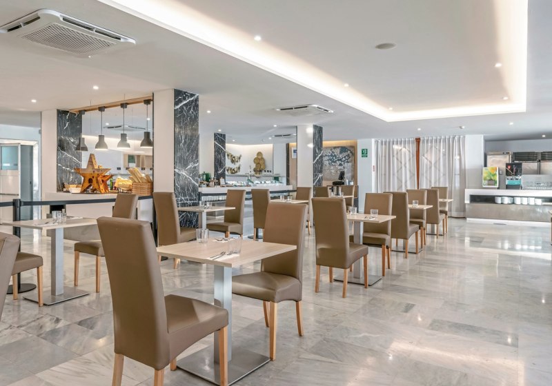 Im Restaurant erwartet Euch Buffetküche mit Live-Kochen. Ihr wählt zwischen Frühstück, Halb- oder Vollpension sowie Mittagessen und Snacks. Vegetarische und glutenfreie Optionen sind vorgesehen; alkoholfreie und alkoholische Getränke runden das Angebot ab. So steuert Ihr Euren Tag flexibel zwischen Strand, Pool und Essenszeiten.