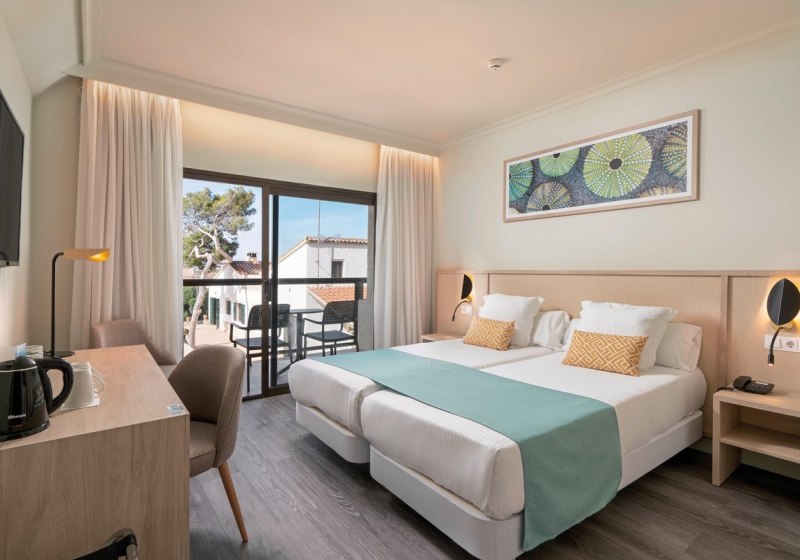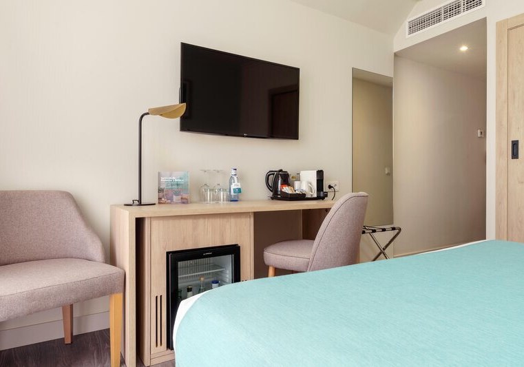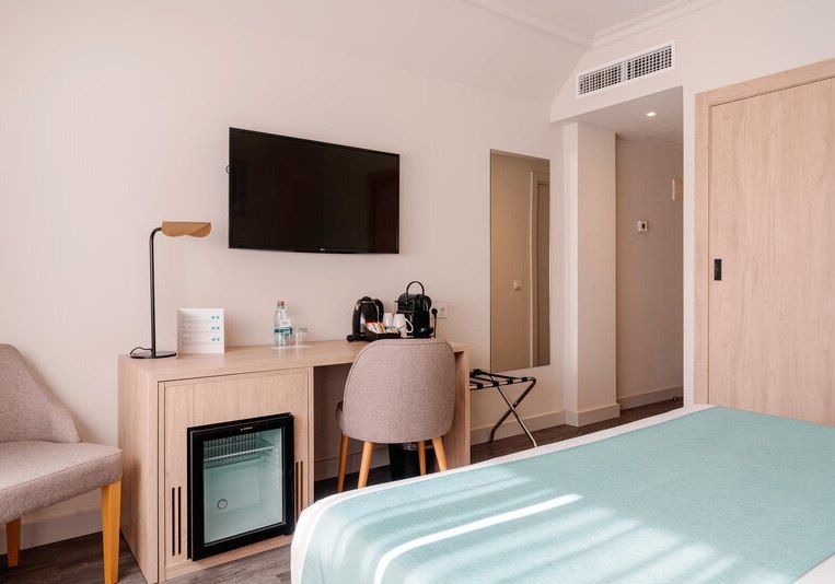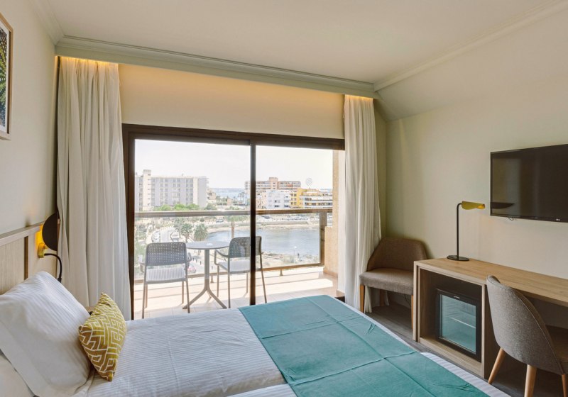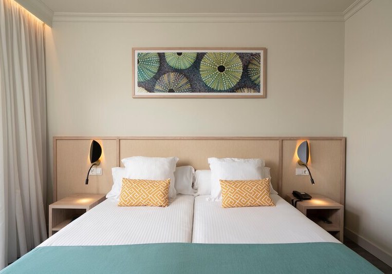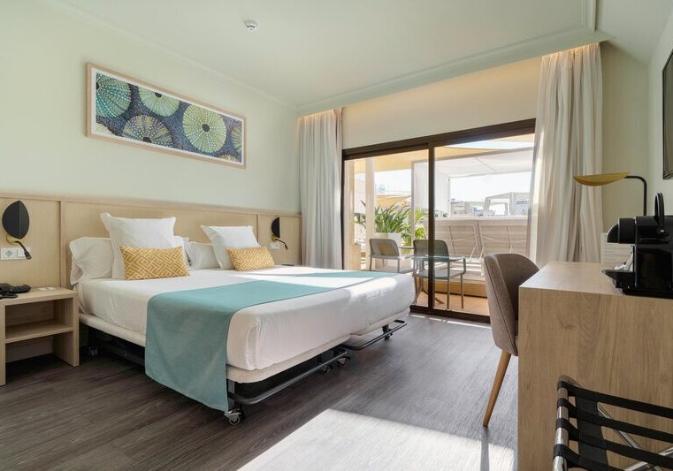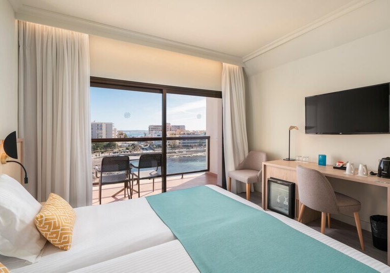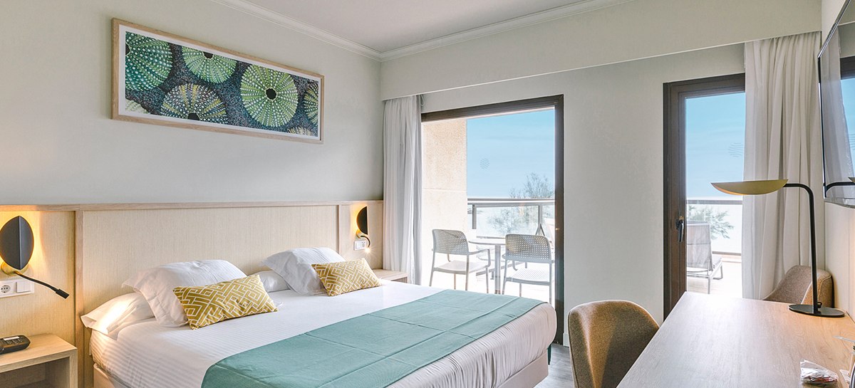 Viele Zimmerkategorien bieten Meer- oder Poolblick. Doppelbetten oder zwei Einzelbetten, Schrank, Telefon und Vergrößerungsspiegel runden den Komfort ab. Vier barrierefreie Einheiten sind auf Anfrage verfügbar. Highlight: Zimmer mit Meer- oder Poolblick für stimmige Ausblicke.