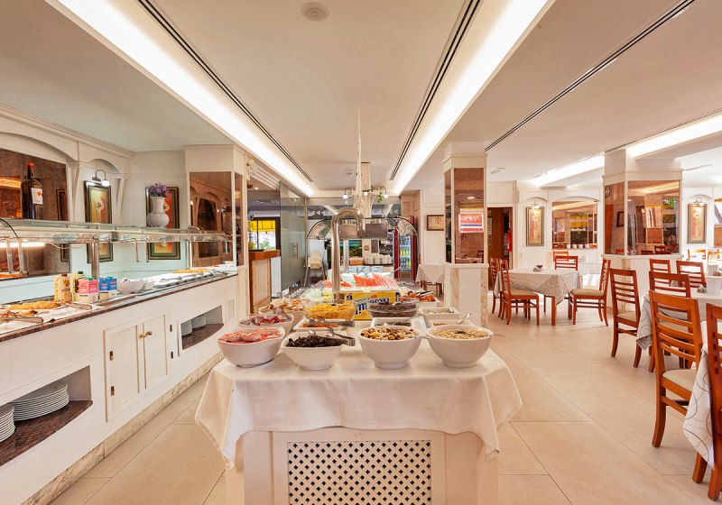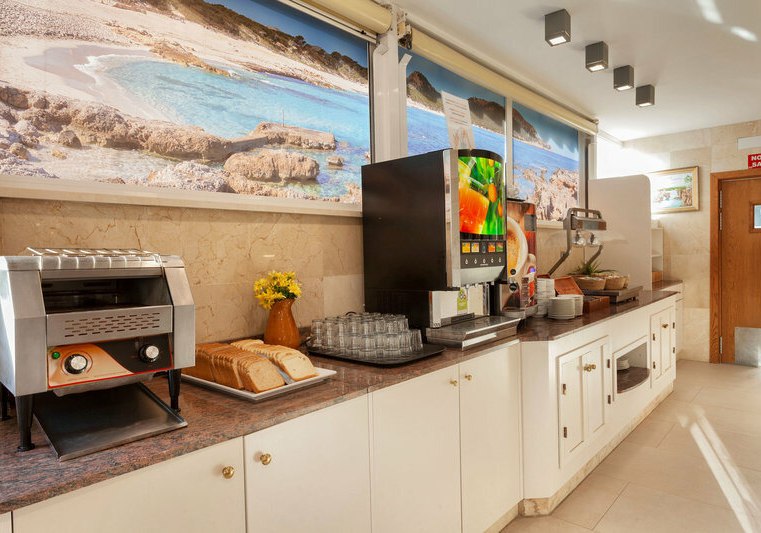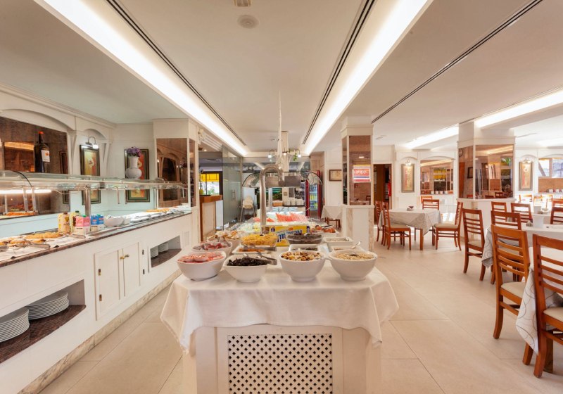Im Restaurant mit Terrasse esst Ihr in Nichtraucher-Atmosphäre und bedient Euch an Buffetmahlzeiten. Die Bar und das Café flankieren den Tag mit Getränken und kleinen Auszeiten, auf der Terrasse streift Euch die Abendluft, während Ihr das Treiben in Cala Ratjada mit etwas Abstand beobachtet.