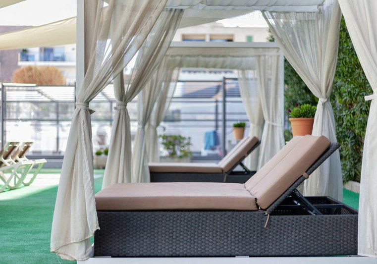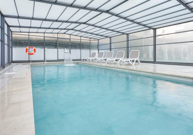 Auf der Sonnenterrasse findet Ihr Liegen und Schirme, der Außenpool bietet Platz für Bahnen und kurze Abkühlungen. Ein separates Kinderbecken sorgt dafür, dass Familien klar strukturierte Bereiche vorfinden. Wer aktiv bleiben möchte, nutzt den hauseigenen Fitnessraum für kurze Einheiten.