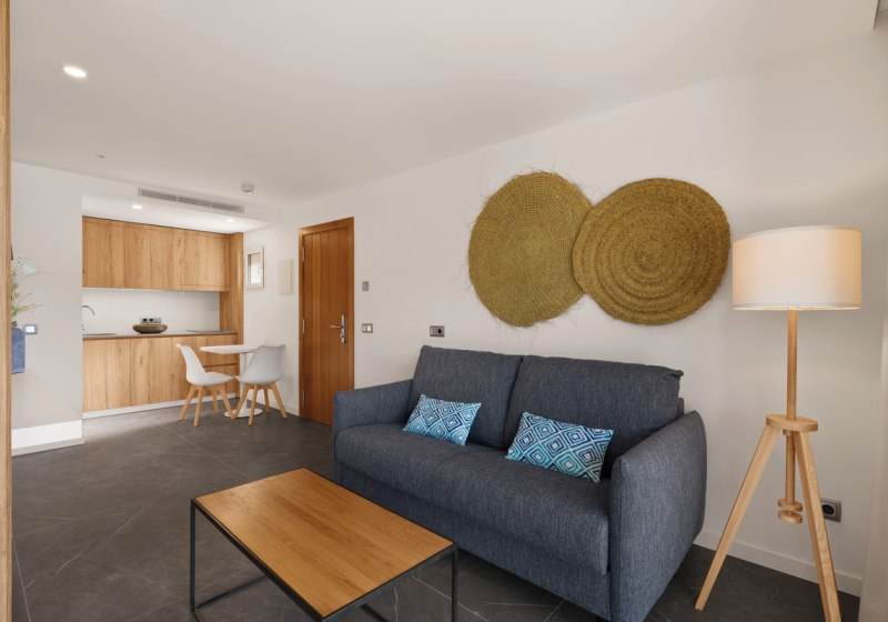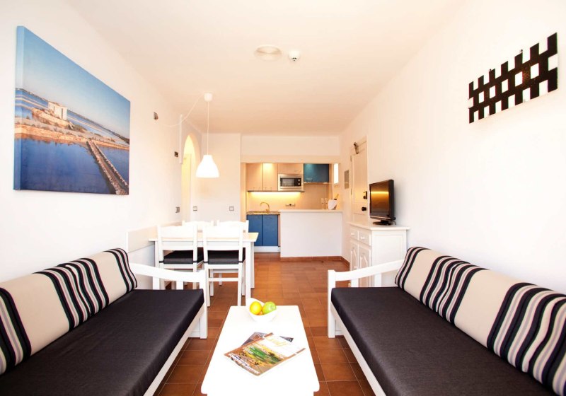 Ihr wohnt in Suiten und Juniorsuiten mit dem Komfort eines Apartments: kombinierter Wohn-/Schlafraum, auf Wunsch getrennte Schlafzimmer, Kitchenette oder Kochnische und eine Sitzecke. Balkon oder Terrasse öffnen den Blick in Gartenbereiche oder – je nach Lage – aufs Meer. Fliesenboden, Schreibtisch und ausreichend Stauraum erleichtern längere Aufenthalte.