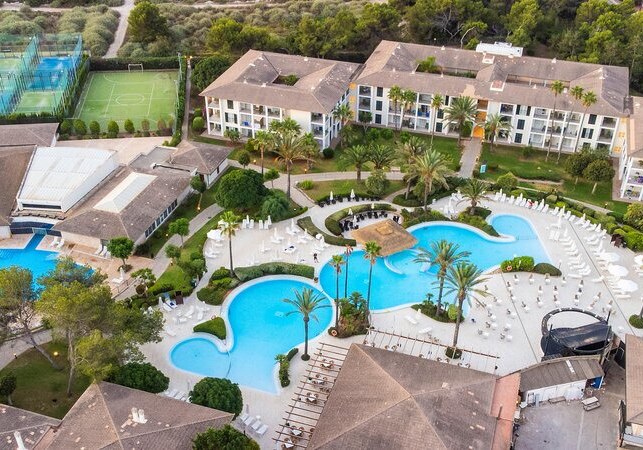 Im Blau Colonia Sant Jordi erwartet Euch ein weitläufiges Resort mit klarer Struktur, gepflegter Gartenlandschaft und viel Platz für ruhige wie aktive Tage. Die Anlage wurde 2023 renoviert und verteilt sich über drei Etagen sowie rund 58.000 Quadratmeter Grün. Familien, Paare und Abenteurer und Aktivreisende finden hier gleichermaßen passende Bereiche – vom kindgerechten Splashpool bis zu sportlicher Infrastruktur und entspannten Ruheplätzen.