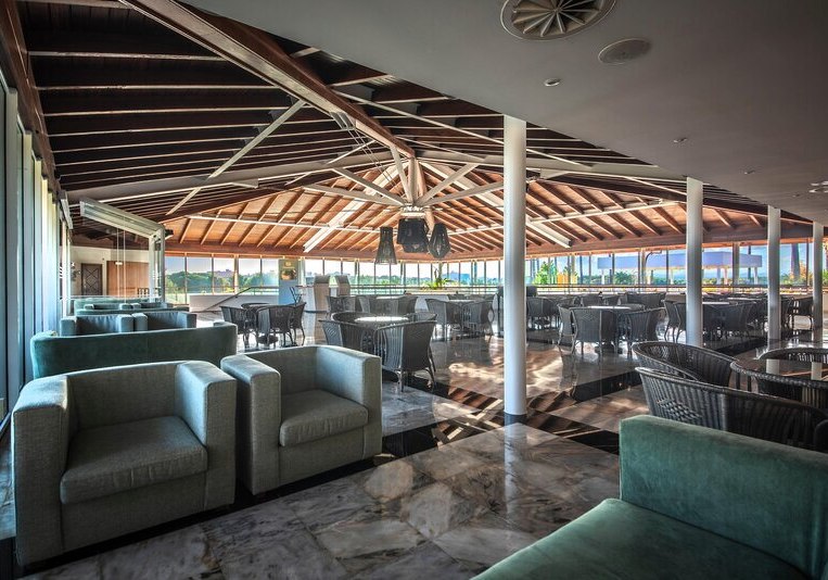 Die Infrastruktur ist umfassend und alltagspraktisch: 395 Zimmer, 24-Stunden-Rezeption, großzügige Gartenflächen, Sonnenterrassen mit Liegen und Schirmen sowie zwei Außenpools, davon einer beheizbar. Zwei Kinderbecken und ein Splashpool schaffen eigene Bereiche für Familien. WLAN ist im gesamten Hotel inklusive; ein Minimarkt und weitere Shops decken spontane Bedürfnisse.