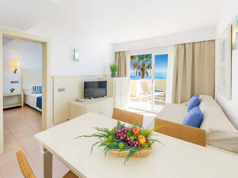 Zimmer• Klimaanlage • Haartrockner • Kochnische • Mikrowelle • Minibar (gegen Gebühr) • Safe • Meerblick (je nach Zimmerkategorie: direkt oder seitlich) • Schlafsofa • Kaffee-/Teezubereiter • Terrasse • Fernseher (Sat-TV) • rollstuhlgerechte Zimmer (auf Anfrage) • WiFi • Balkon oder Terrasse (je nach gebuchter Leistung) • Gartenblick (je nach gebuchter Leistung) • Poolblick (je nach gebuchter Leistung) • Maximalbelegung (Kinder) (2) • Balkon (je nach Zimmerkategorie) • Minikühlschrank
