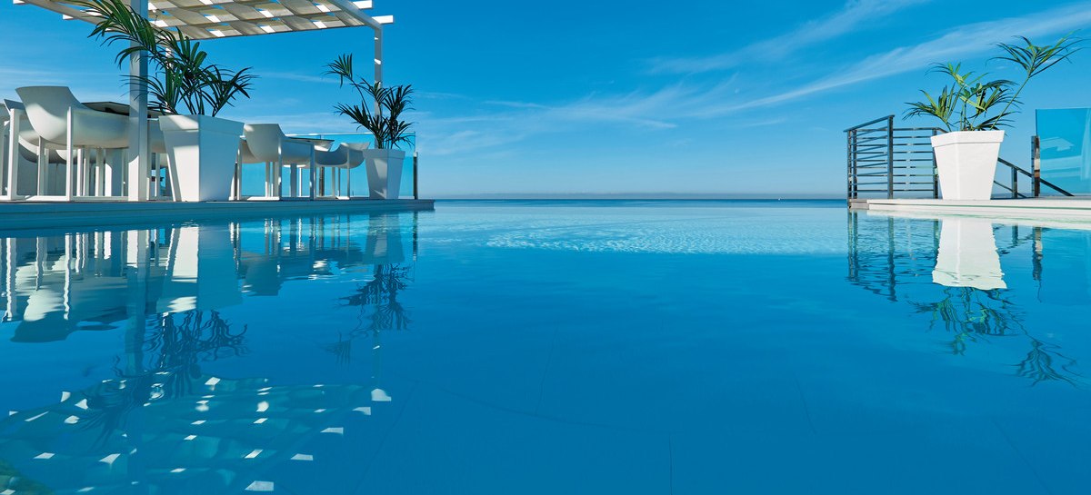 - Infinitypool: Rooftop-Pool mit klarer Kante und entspannter Liegezone.