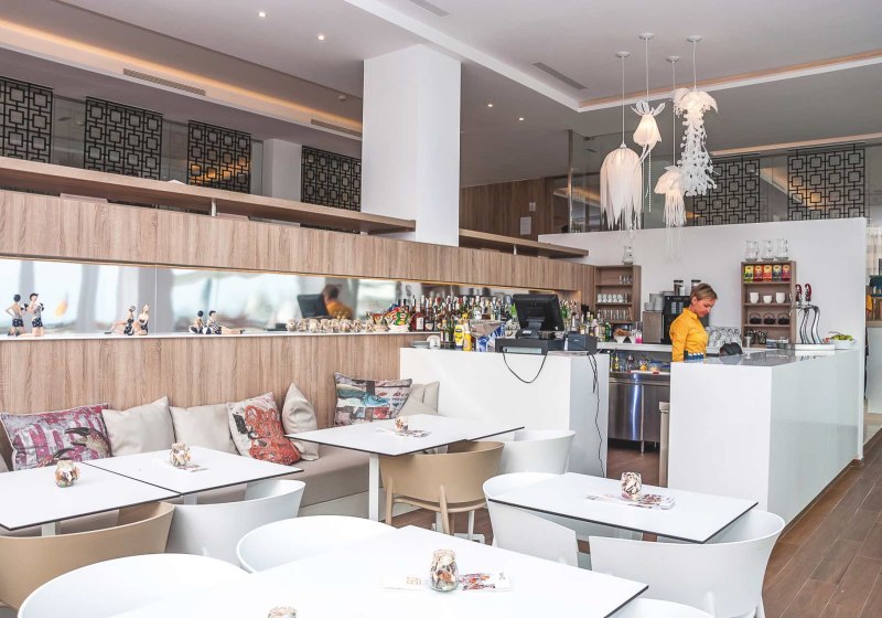 Im BQ Aguamarina Boutique Hotel wohnt Ihr in einem überschaubaren Boutique-Haus mit 56 Zimmern auf vier Etagen. Die Stimmung wirkt angenehm privat: kurze Wege, aufmerksamer Service an der 24-h-Rezeption und klare Linien in den öffentlichen Bereichen. Ob am Infinitypool der Dachterrasse oder im Café mit Terrasse – Ihr gestaltet Euren Tag flexibel.
