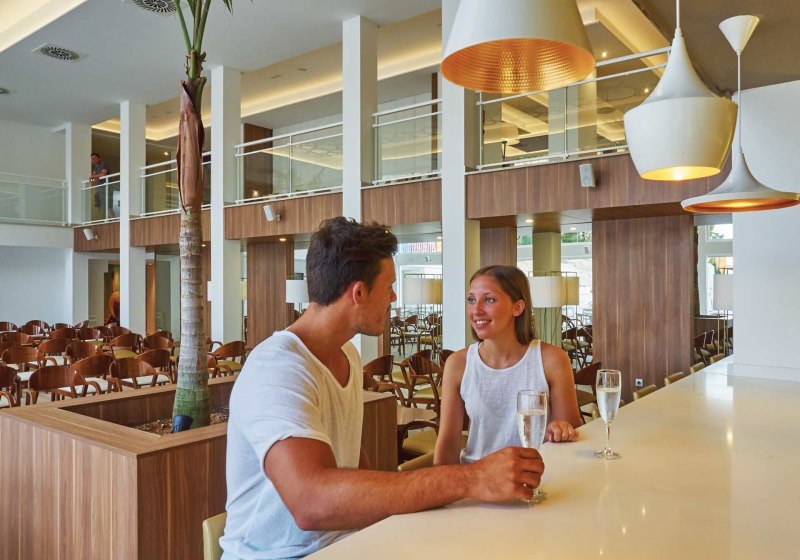 Die Atmosphäre ist klar, ungezwungen und stimmig: kurze Wege, 24-Stunden-Rezeption, durchgängiges WLAN und drei Lifte sorgen für bequeme Abläufe. Im Buffetrestaurant wählt Ihr flexibel – ob Frühstück oder Halbpension – und an der Bar/Snackbar rundet Ihr den Tag lässig ab. Das Haus richtet sich an Strandliebhaber, Paare und alle, die eine erwachsene Auszeit suchen. Highlight: Adults-only Hotel mit Dachterrasse samt Chill-out-Bereich und Relaxpool.