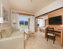 Die Zimmer und Apartments im Hotel sind freundlich eingerichtet und bieten eine Vielzahl von Annehmlichkeiten, darunter eine Kitchenette, Bad und Dusche/WC, Flachbildfernseher, Föhn, Kaffeemaschine, Kühlschrank, Mikrowelle, Telefon, Klimaanlage und Wlan. Je nach Bedarf können die Zimmer mit zusätzlichen Optionen wie Poolseite, Meerblick, Terrasse oder Garten gebucht werden.