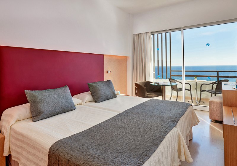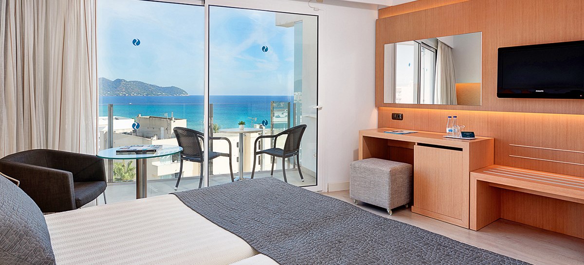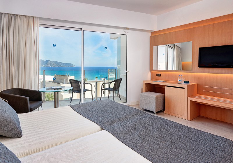 Die Zimmer sind funktional und strandnah gedacht: Klimaanlage, Dusche/WC, Föhn, Sat-TV, Telefon, Safe und Minibar. Ein Balkon erweitert den Raum, Meerblick ist buchbar. In den Juniorsuiten ergänzt eine Sitzecke den Wohnkomfort, das Sofabett eröffnet flexible Schlafoptionen für Begleitung oder Familie.