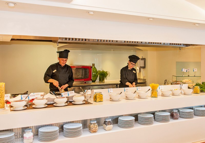 - Flexibel essen: Frühstück bis Abendessen, dazu Diätoptionen und Kindermenüs verfügbar.