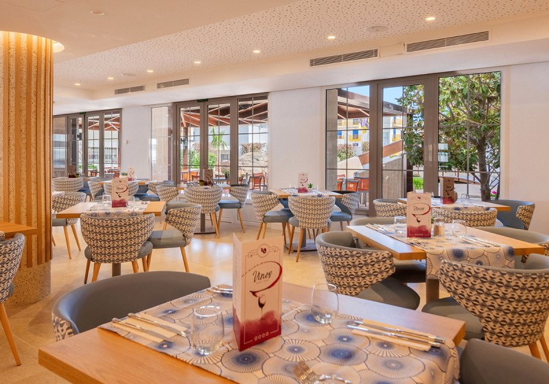 Im Buffetrestaurant mit Außenterrasse erwartet Euch mediterrane und internationale Küche. Morgens stärkt Ihr Euch am Frühstücksbuffet, abends wird mit Show-Cooking gearbeitet. Vegetarische Optionen sind vorgesehen, sodass Ihr Euer Mahl flexibel zusammenstellt. Die Atmosphäre bleibt angenehm ungezwungen, der Service verbindlich.