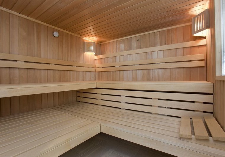 - Sauna: Hemlock-Sauna und Hamam setzen klare Wärmeakzente.