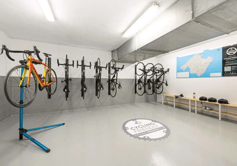 Sportlich durchdacht: Das Cyclingcenter mit Fahrradkeller, Werkstation, Waschbereich und Kartenmaterial unterstützt Eure Routenplanung. Praktische Services wie Parkplatz, Business- und Konferenzmöglichkeiten oder eine Ladestation für Elektrofahrzeuge runden das Bild. Ihr bewegt Euch zwischen Pool, Garten und Bar mit kurzen Distanzen – funktional, angenehm und auf den Punkt.