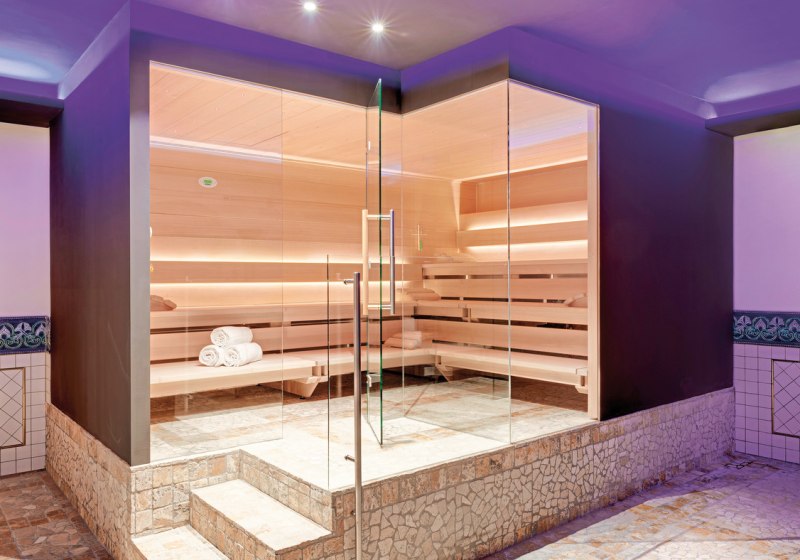 - Spa: 1.400 Quadratmeter mit Pool, Whirlpool, Sauna und Dampfbad.