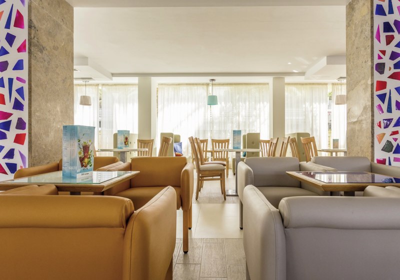 Die öffentlichen Bereiche sind funktional gegliedert: Lobby mit 24-Stunden-Rezeption, zwei Lifte im Hauptgebäude und weitläufige Außenflächen mit Sonnenterrasse. Zwei Pools sowie ein separates Kinderbecken strukturieren den Außenbereich, Badetücher erhaltet Ihr gegen Kaution. WLAN ist im gesamten Hotel kostenfrei nutzbar – praktisch fürs Planen, Streamen oder für die schnelle Nachricht nach Hause.