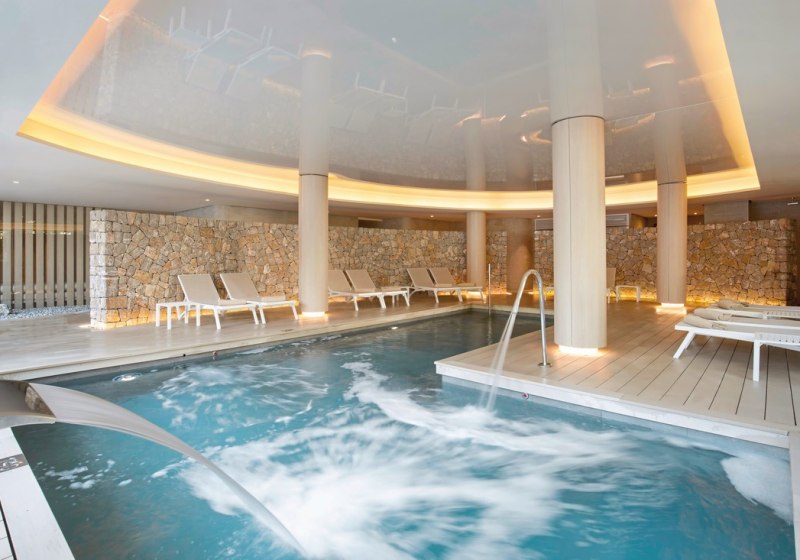 Der Spa-Bereich ist Erwachsenen vorbehalten. Im Hydrotherapie-Hallenbad ziehen Ihr Bahnen gegen die Gegenstromanlage oder nutzt Massagestrahlen. Sauna, Türkisches Bad und Wechselduschen ergänzen die Wasserwelt. Draußen wartet eine Terrasse mit zwei Whirlpools und Liegen für ruhige Pausen im Freien. Highlight: Klare Spa-Struktur mit Indoor- und Outdoor-Elementen.