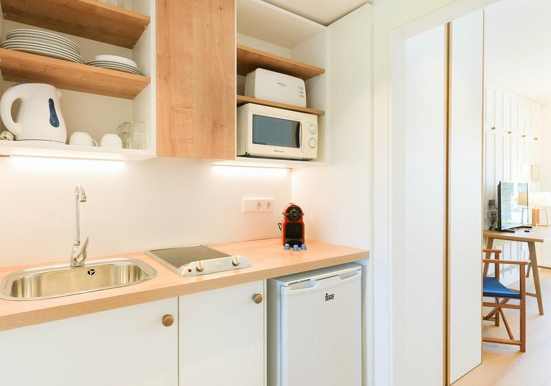 Suiten mit Kitchenette und Mikrowelle ermöglichen einfache Zubereitungen, ideal für flexible Tagesrhythmen. Babybetten sind kostenfrei verfügbar. Kabel-/Sat-TV begleitet ruhige Abende, der Eindruck bleibt funktional und gepflegt. Je nach Lage blickt Ihr in Garten- oder Poolrichtung. Highlight: Kitchenette schafft Autonomie in den Ferien.
