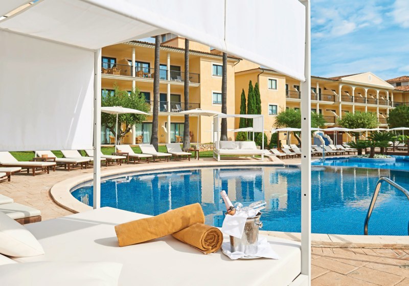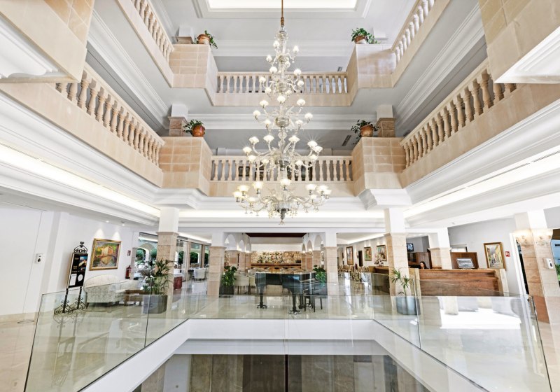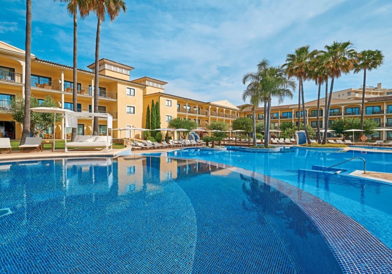Im CM Mallorca Palace wohnt Ihr in einem Haus, das Ruhe und Konzentration auf erwachsene Reisende vereint. Das Ambiente wirkt klar strukturiert, mit großzügigen Innen- und Außenbereichen, in denen Ihr Euch schnell orientiert. Draußen wartet ein Außenpool mit Liegen und Sonnenschirmen, drinnen ergänzen Hallenbad und Wellnessbereich das entspannte Tempo. WLAN im gesamten Hotel hält Euch überall verbunden – ob in der Lobby oder auf der Terrasse.