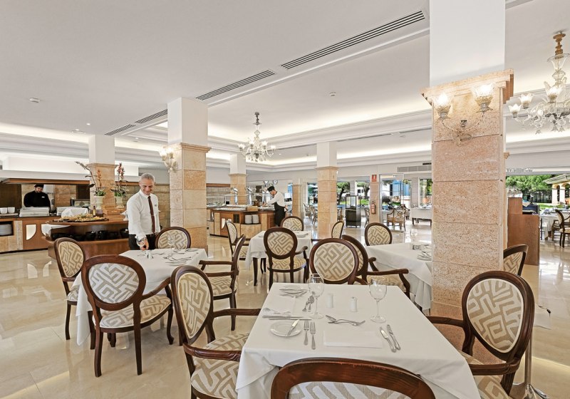 CM Mallorca Palace verbindet die Nähe zum Strand mit einem klaren Erwachsenenfokus. Ihr wohnt zentral, lauft wenige Minuten zum Meer und habt abends Live-Musik statt großer Show. Außenpool, Hallenbad und Sauna strukturieren entspannte Tage, das Buffetrestaurant und zwei Bars versorgen Euch ohne Umwege. WLAN im ganzen Haus hält Planung und Kommunikation leicht.