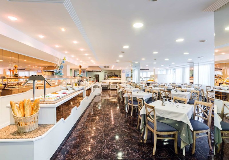 Im klimatisierten Restaurant stärkt Ihr Euch mit Frühstück, Mittag- und Abendessen. Live-Kochen setzt frische Akzente am Buffet. An zwei Bars und in der Lobbybar gibt es Getränke von alkoholfrei bis alkoholisch, ergänzt um eine Poolbar für kurze Wege am Wasser. Highlight: Live-Cooking als klarer Akzent im Buffetalltag.