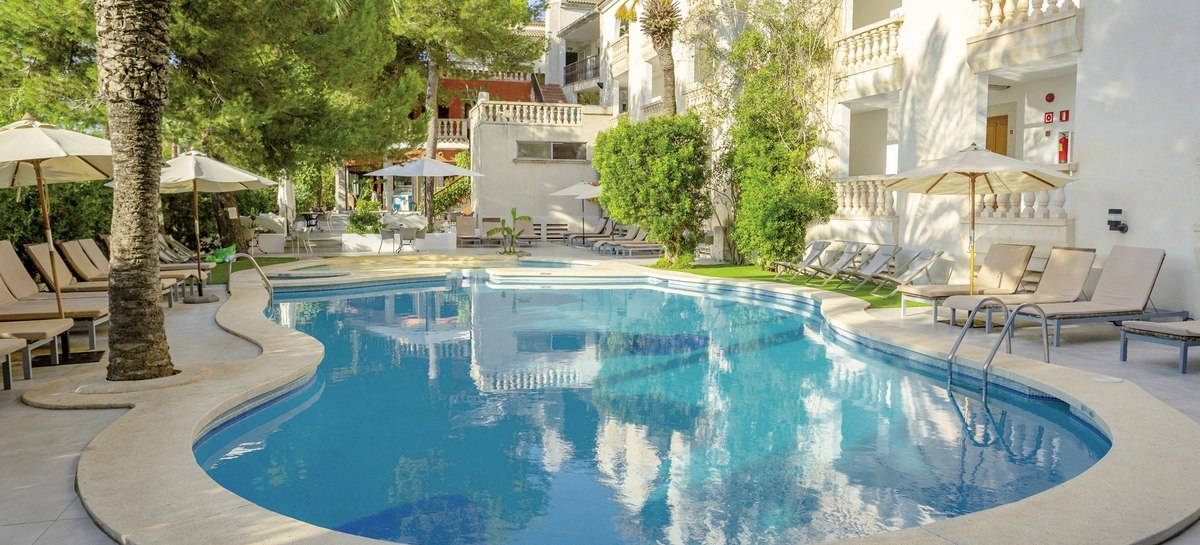 Im Es Bauló Petit Hotel verbindet Ihr die Unabhängigkeit eines Apartmenthotels mit der Verlässlichkeit eines gepflegten Hauses. Studios und Appartements geben Euch Raum für eigene Rhythmen, während der Außenbereich mit Pool, Kinderbecken und Sitzterrassen entspannt strukturiert wirkt. WLAN ist im gesamten Hotel kostenlos, die FKK-Dachterrasse setzt einen klaren Akzent.