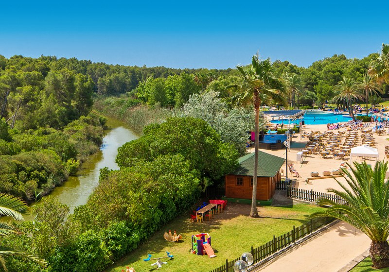 Exagon Park verbindet eine naturnahe Lage am Kiefernwald mit kurzen Wegen zum Strand von Son Baulo. Weitläufige Gartenflächen, eine großzügige Poolterrasse und verlässliche Services bilden den Rahmen für entspannte Tage in den Ferien – ob zu zweit, mit Freunden oder als Familie.