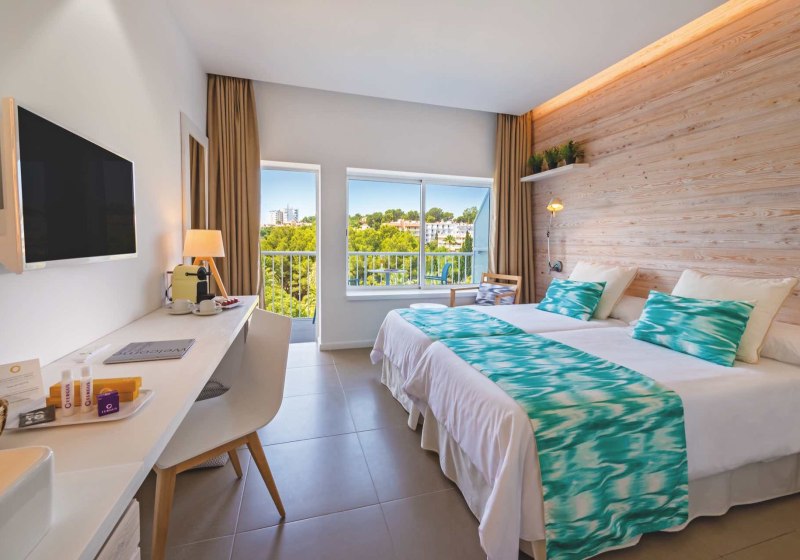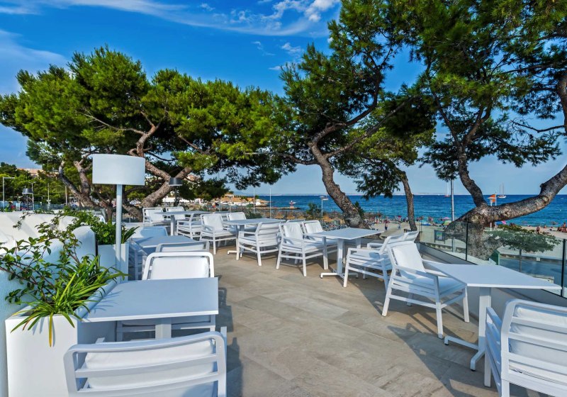 Die Atmosphäre wirkt modern und unaufgeregt: Sonnenterrassen mit Liegestühlen und Schirmen, eine stilvolle Poolbar und durchdachte Services sorgen für fließende Abläufe. Ihr entscheidet frei zwischen Ruhe am Wasser, einem Drink an der Bar oder Abstechern in die umliegenden Bars und Cafés von Palmanova. Highlight: Adults-only-Konzept mit zwei Außenpools für entspannte Tage zu zweit.