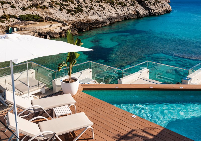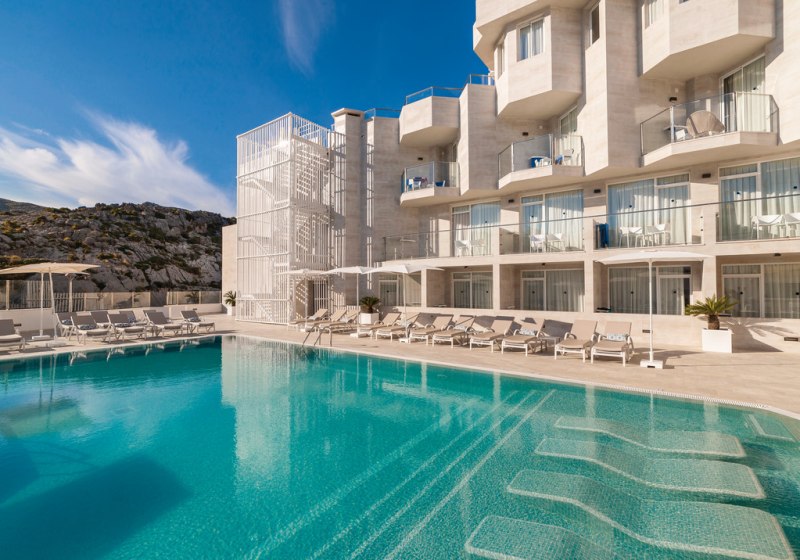 Globales Don Pedro empfängt Euch als ruhiges Refugium direkt an der Cala Sant Vicenç. Das Haus richtet sich ausschliesslich an erwachsene Reisende und schafft damit einen entspannten Rahmen ohne Familienprogramm. Zwei Pools – darunter ein Relaxpool auf der Dachterrasse – und weitläufige Sonnendecks prägen die Atmosphäre, dazu klare Linien und ein aufmerksamer, mehrsprachiger Service.
