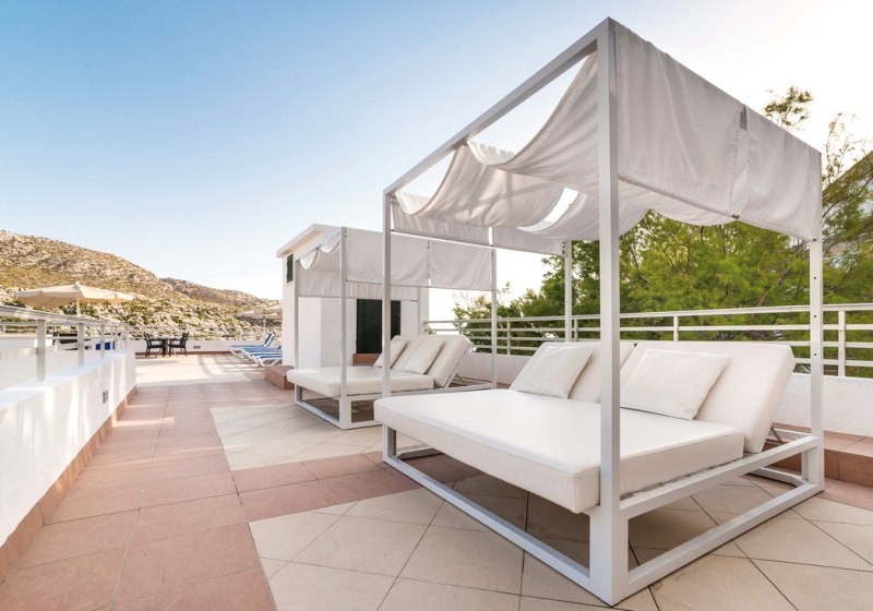 Im Globales Simar wohnt Ihr in Cala Sant Vicenç direkt an der Badebucht – nah am öffentlichen Sandstrand und mit Blick auf das klare Mittelmeer. Die Atmosphäre wirkt locker und unkompliziert, getragen von lichtdurchfluteten Gemeinschaftsbereichen, einer Sonnenterrasse und einer Dachterrasse. Highlight: Dachterrasse mit Blick auf die Bucht, ideal für entspannte Stunden.