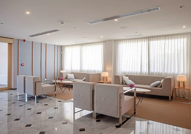 Die öffentlichen Bereiche präsentieren sich übersichtlich und funktional: Empfangsbereich mit 24-Stunden-Rezeption, zwei Lifte, Aufenthaltsräume und durchgehendes WLAN. Auf der Sonnenterrasse warten Liegen und Schirme sowie Balibetten. Badehandtücher sind organisiert verfügbar. Für Eure Mobilität stehen Mietwagen- und Fahrradvermietung ebenso bereit wie ein Parkplatz, die Wege bleiben kurz.